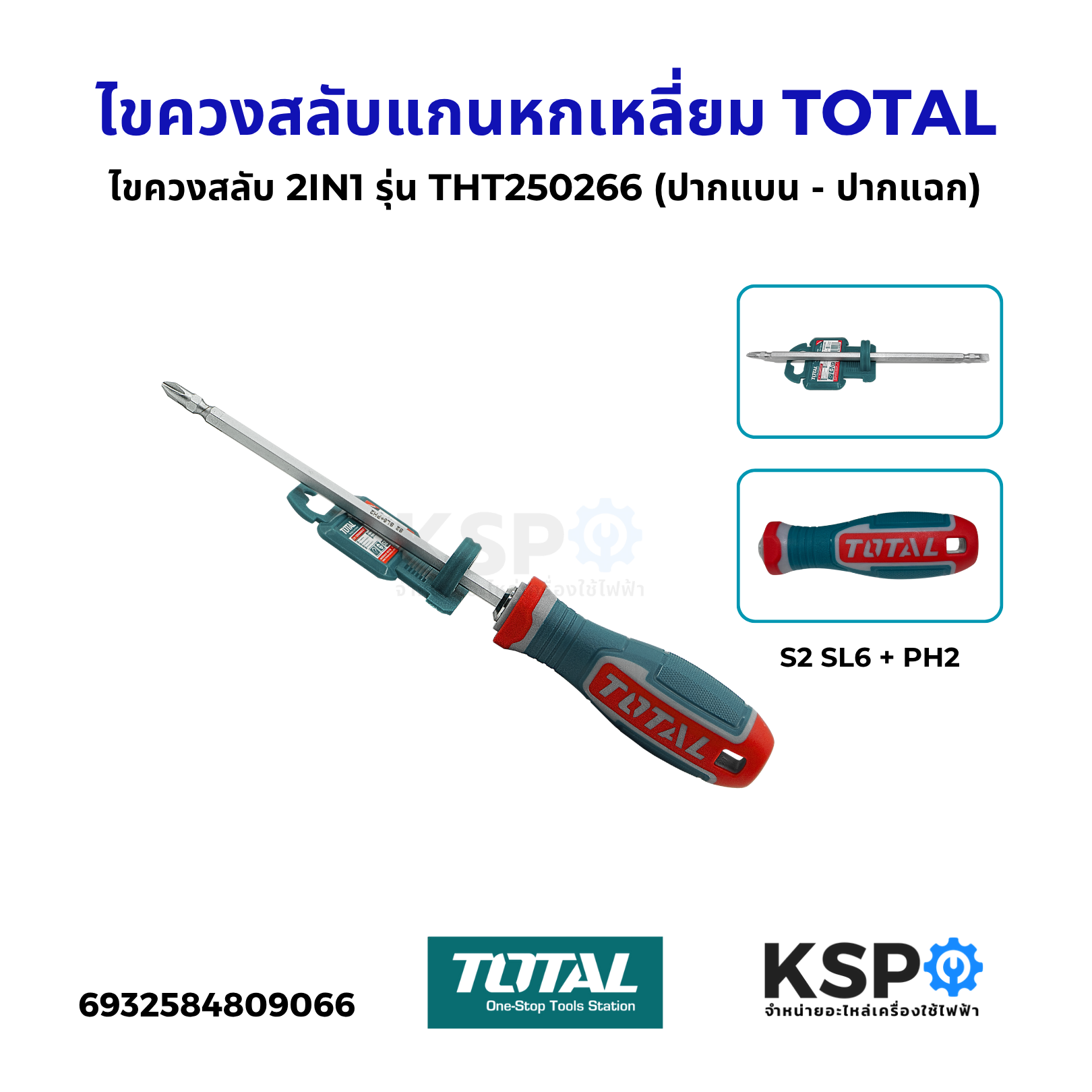ควงสลับแกนหกเหลี่ยม 2IN1 จากแบรนด์ TOTAL รุ่น THT250266 มาพร้อมฟังก์ชันการใช้งานแบบ 2 in 1 (ปากแบน + ปากแฉก) ในด้ามเดียว สะดวก ประหยัดพื้นที่ เหมาะสำหรับงานซ่อมแซมทั่วไป งานช่าง งาน DIY และงานอุตสาหกรรม ตัวไขควงผลิตจากวัสดุเหล็กโครมวานาเดียมอัลลอย ที่มีความแข็งแรง ทนทานต่อการใช้งานในระยะยาว