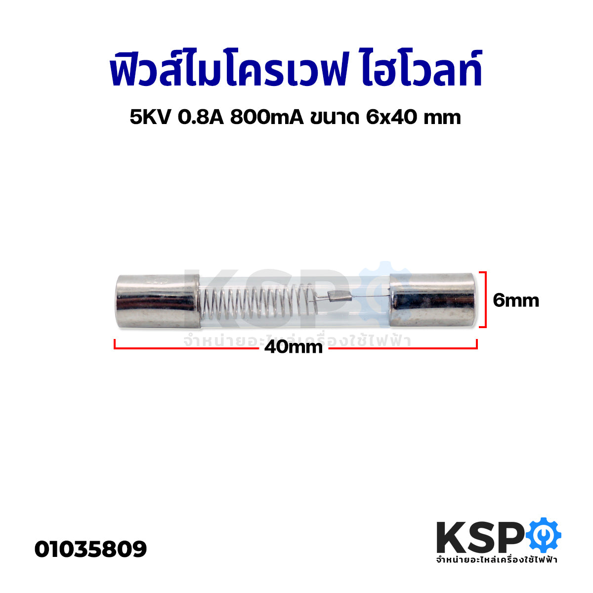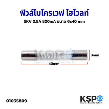ชนิดสินค้า: ฟิวส์ไฮโวลท์ไมโครเวฟ 5KV 0.8A ขนาด 6x40 มม. (อะไหล่ไมโครเวฟ)