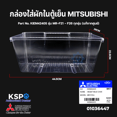 กล่องใส่ผักในตู้เย็น กล่องผัก MITSUBISHI มิตซูบิชิ Part No. KIEM42405 รุ่น MR-F21 - F26 ทุกรุ่น (แท้จากศูนย์) Vegetable bin อะไหล่ตู้เย็น