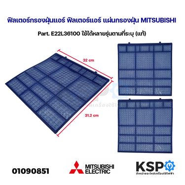 ฟิลเตอร์กรองฝุ่นแอร์ ฟิลเตอร์แอร์ แผ่นกรองฝุ่น MITSUBISHI มิตซูบิชิ Part. E22L36100 ใช้ได้หลายรุ่นตามที่ระบุ (แท้) อะไหล่แอร์
