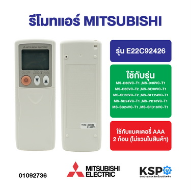 • รีโมทนี้เหมาะสำหรับเครื่องปรับอากาศ MITSUBISHI ที่ใช้ Part No. E22C92426
