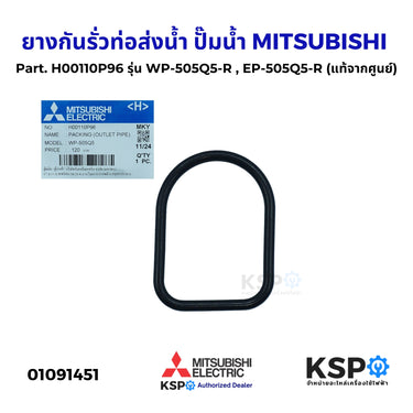 ยางกันรั่วท่อส่งน้ำ ปั๊มน้ำ MITSUBISHI มิตซูบิชิ Part. H00110P96 รุ่น WP-505Q5-R , EP-505Q5-R (แท้จากศูนย์) อะไหล่ปั๊มน้ำ