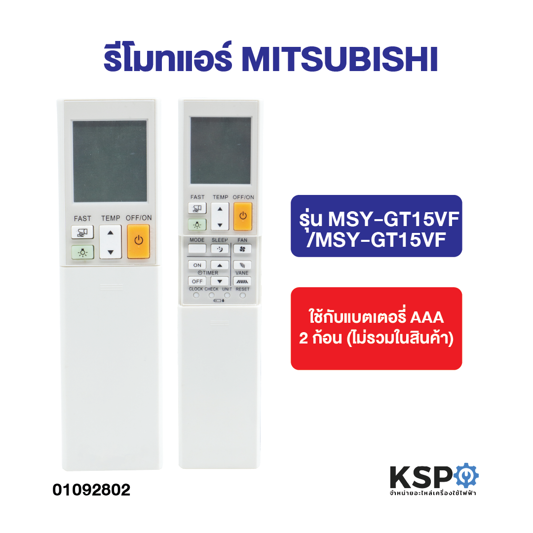 - รีโมทนี้เหมาะสำหรับเครื่องปรับอากาศ MITSUBISHI รุ่น MSY-GT15VF และ MUY-GT15VF