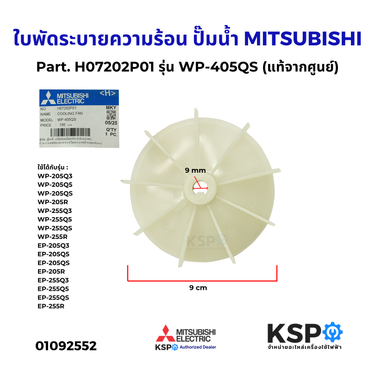 ใบพัดระบายความร้อน ปั๊มน้ำ MITSUBISHI มิตซูบิชิ Part. H07202P01 รุ่น WP-405QS ใบพัดระบายอากาศ (แท้จากศูนย์) อะไหล่ปั๊มน้ำ