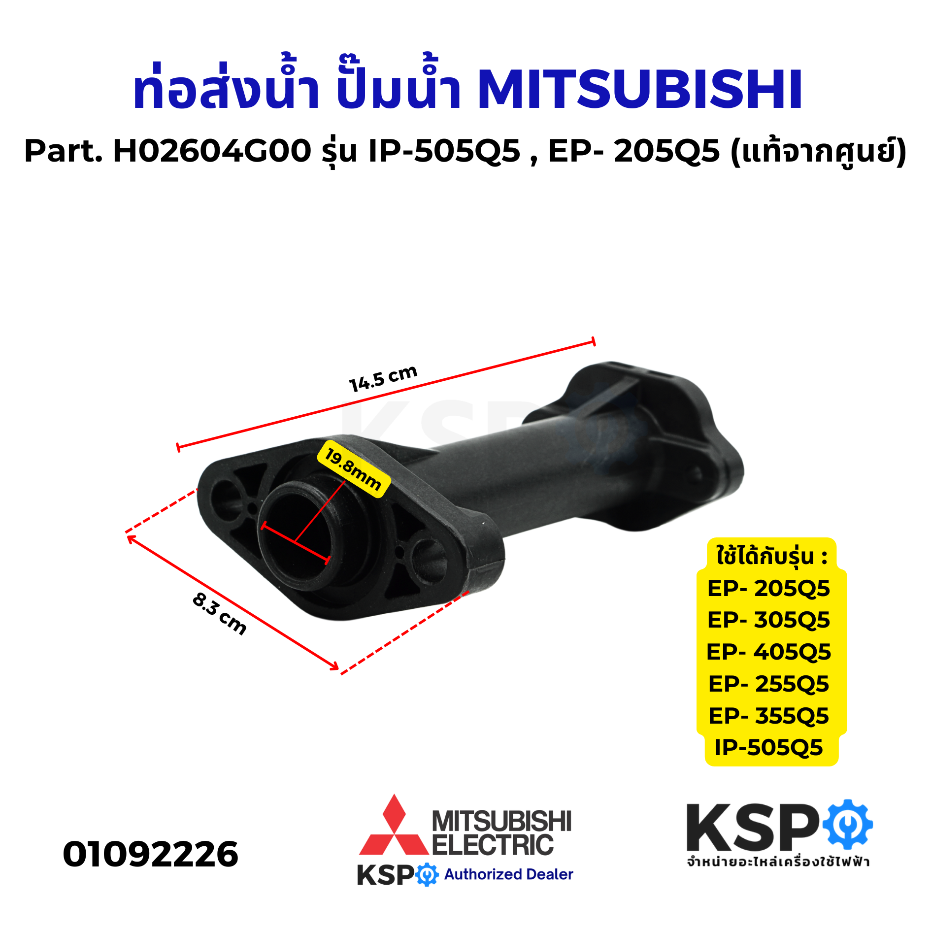 ท่อส่งน้ำปั๊มน้ำจาก MITSUBISHI Part. H02604G00 เป็นอะไหล่แท้จากศูนย์สำหรับปั๊มน้ำรุ่นต่างๆ เช่น EP-205Q5, EP-305Q5, IP-505Q5 และรุ่นอื่นๆ อีกมากมาย ออกแบบมาให้รองรับการใช้งานที่มีประสิทธิภาพสูง เหมาะสำหรับผู้ที่ต้องการอะไหล่คุณภาพดีและทนทานจากแบรนด์ชั้นนำ
