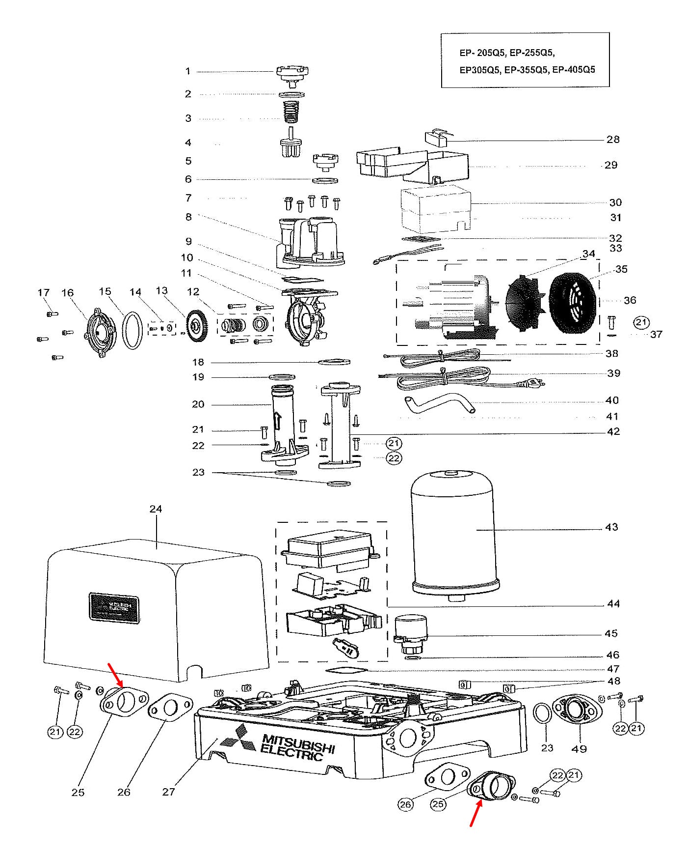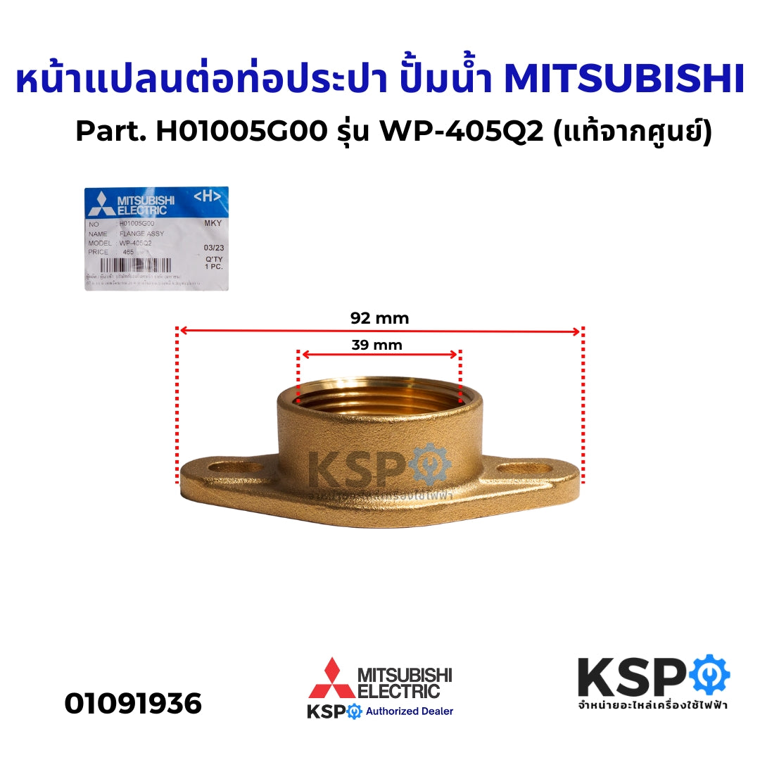 หน้าแปลนต่อท่อประปา ปั้มน้ำ MITSUBISHI มิตซูบิชิ Part. H01005G00 รุ่น WP-405Q2 (แท้จากศูนย์) อะไหล่ปั๊มน้ำ
