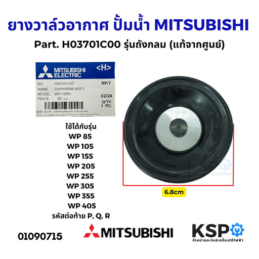 ดูรายละเอียดทั้งหมดลิ้นยางวาล์วอากาศปั้มน้ำ MITSUBISHI มิตซูบิชิ Part. H03701C00 รุ่นถังกลม WP ทุกรุ่น 85-405 P, Q, R (แท้จากศูนย์) อะไหล่ปั้มน้ำ