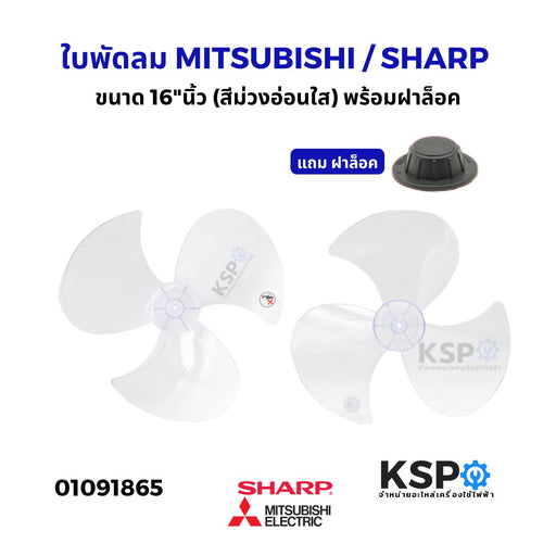 ดูรายละเอียดทั้งหมดใบพัดลม MITSUBISHI มิตซูบิชิ / SHARP ชาร์ป ขนาด 16"นิ้ว (สีม่วงอ่อนใส) พร้อมฝาล็อค อะไหล่พัดลม