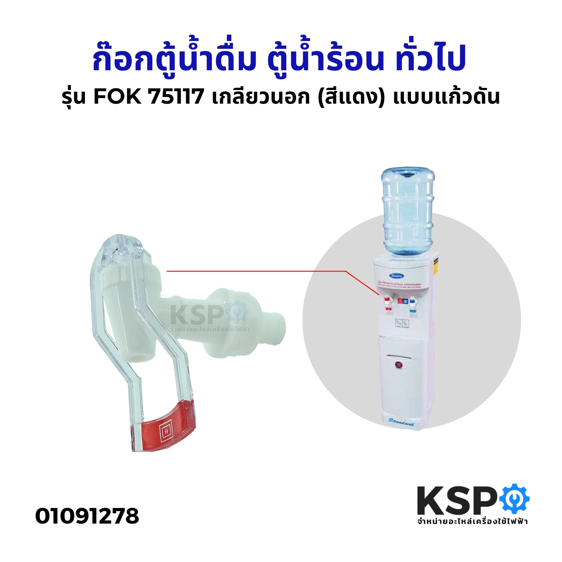 ก๊อกตู้น้ำดื่ม ตู้น้ำร้อน ก๊อกน้ำร้อน เกลียวนอก (ใส) รุ่น FOK 75117 สีแดง พลาสติก แบบแก้วดัน ทั่วไป (สำหรับตู้กดน้ำเย็น-น้ำร้อน)