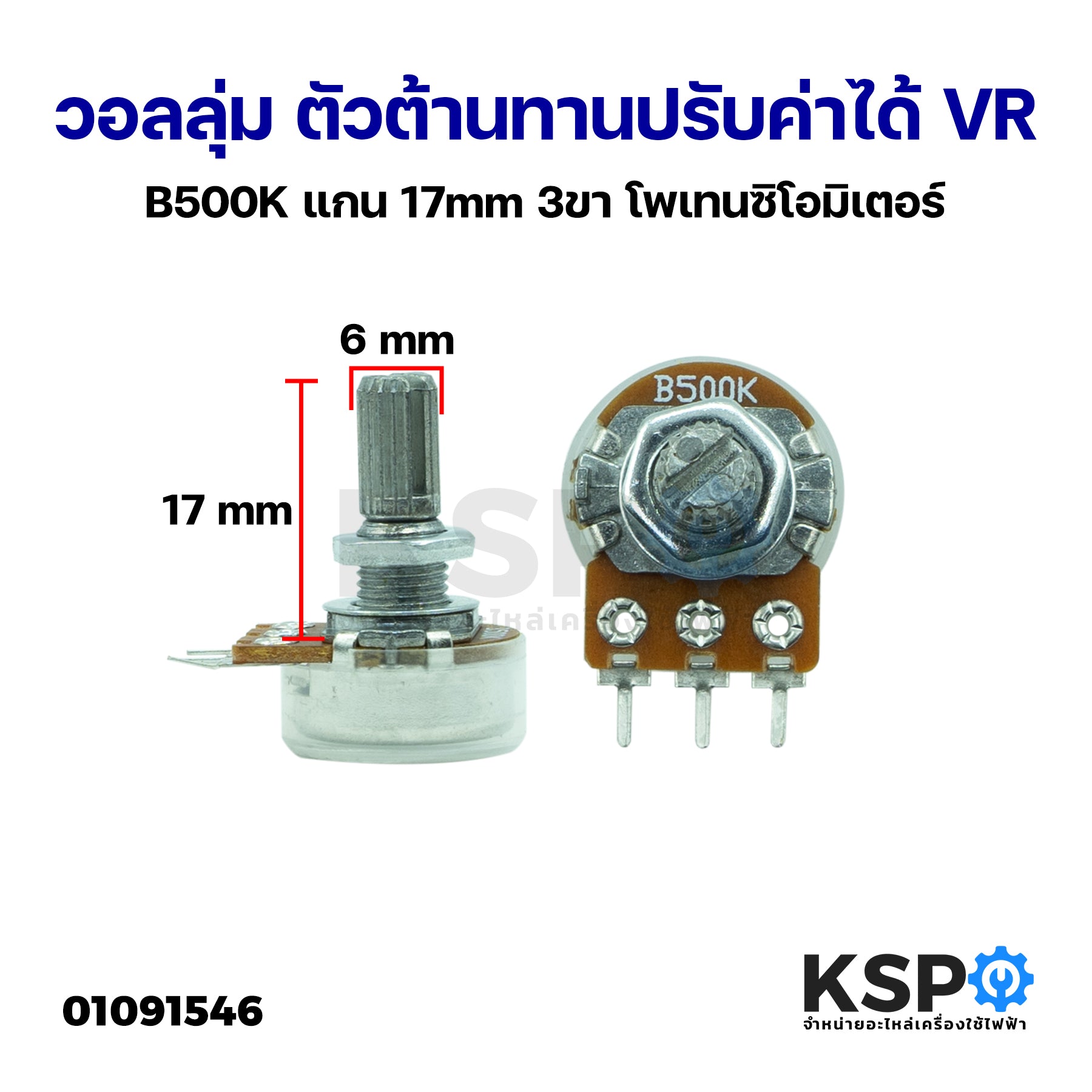 วอลลุ่ม ตัวต้านทานปรับค่าได้ VR กันฝุ่น B500K แกน 17mm 3ขา โพเทนชิโอมิเตอร์ Potentiometer Variable Resistor อุปกรณ์ระบบไฟฟ้า