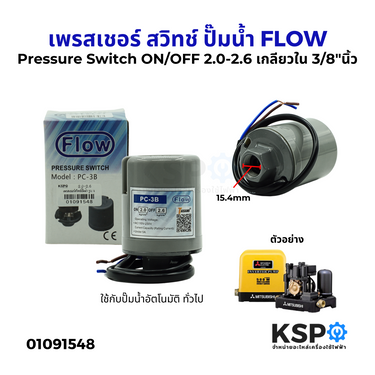 เพรสเชอร์สวิทช์ ปั๊มน้ำจากแบรนด์ FLOW รุ่น PC-3B ออกแบบมาเพื่อควบคุมแรงดันน้ำในปั๊มอัตโนมัติ โดยสามารถตั้งค่า ON/OFF ที่แรงดัน 2.0-2.6 บาร์ เป็นอะไหล่สำคัญที่ใช้สำหรับปั๊มน้ำทั่วไป ช่วยให้ระบบปั๊มน้ำทำงานได้อย่างมีประสิทธิภาพและปลอดภัย