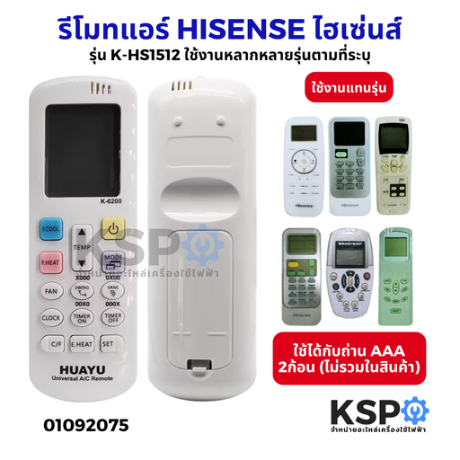 รีโมทแอร์รวม HISENSE ไฮเซ่นส์ รุ่น K-HS1512 ใช้ได้หลายรุ่น อะไหล่ทดแทนที่จำเป็นสำหรับการซ่อมแซมเครื่องปรับอากาศ HISENSE ที่มีปัญหาด้านรีโมทควบคุม ช...
