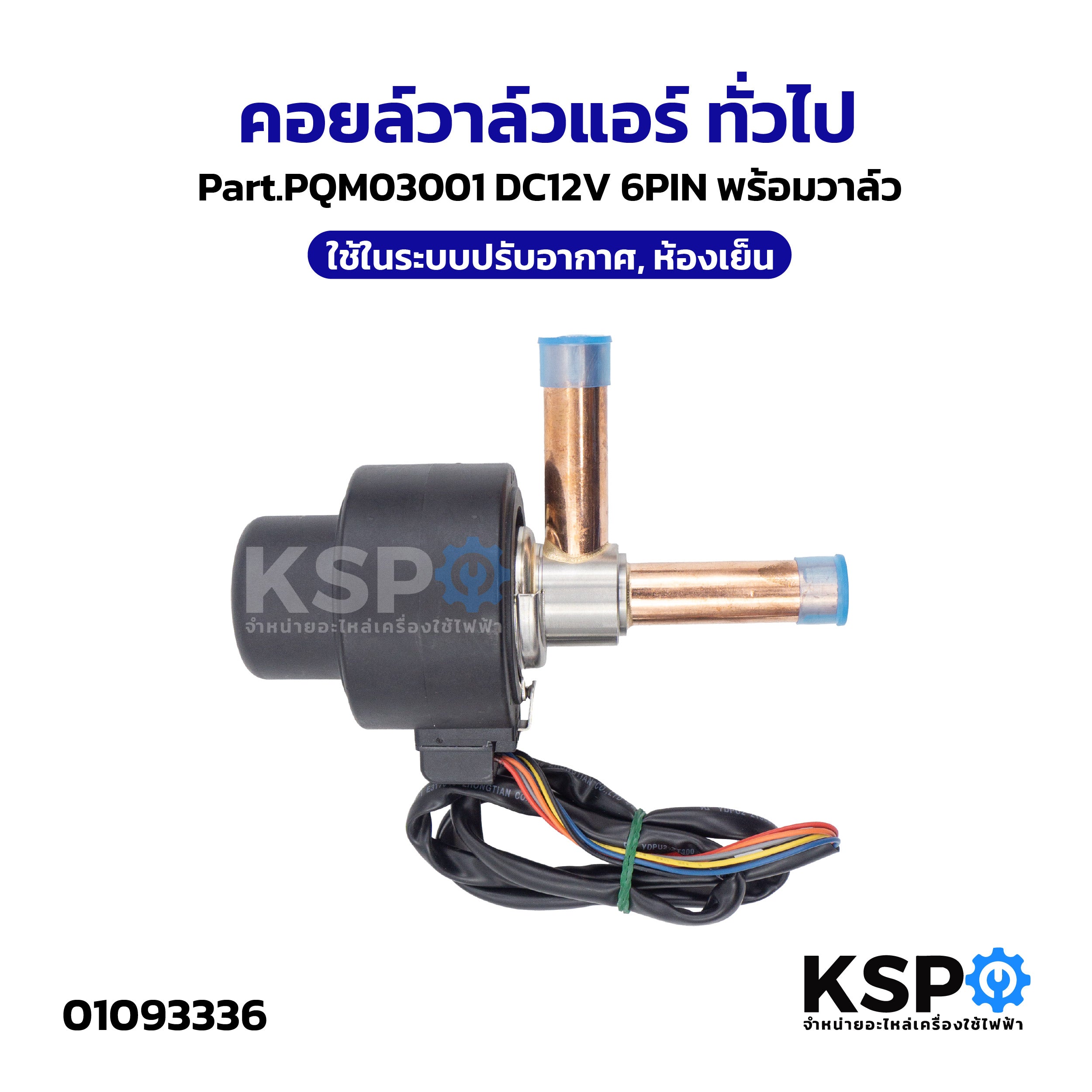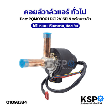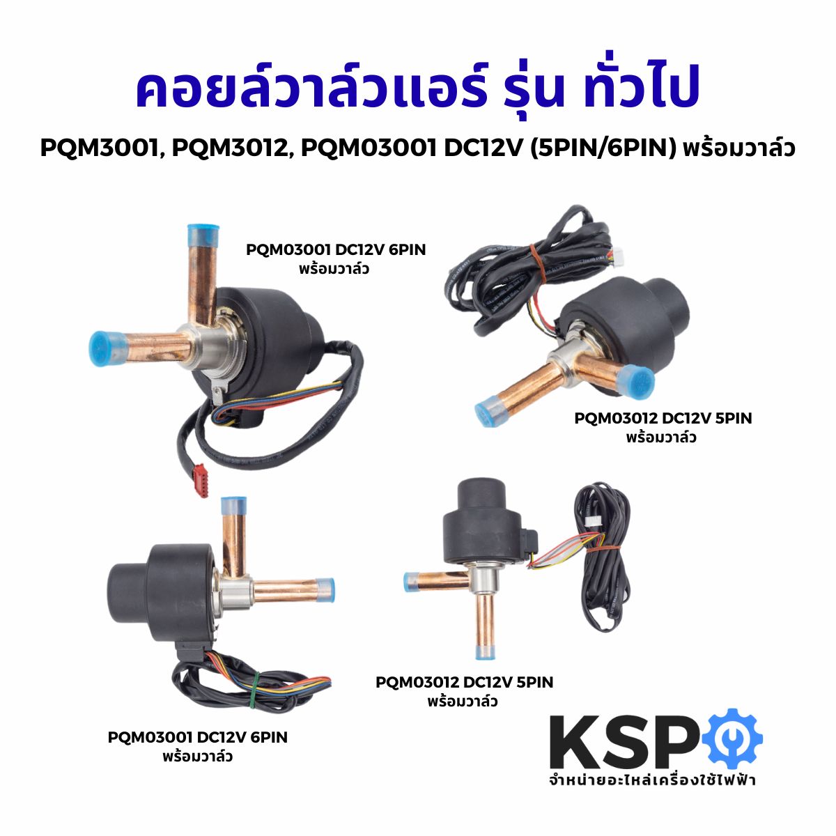 คอยล์วาล์วแอร์ รุ่น ทั่วไป PQM3001, PQM3012, PQM03001 DC12V (5PIN/6PIN) พร้อมวาล์ว ใช้ในระบบปรับอากาศ, ห้องเย็น อะไหล่แอร์