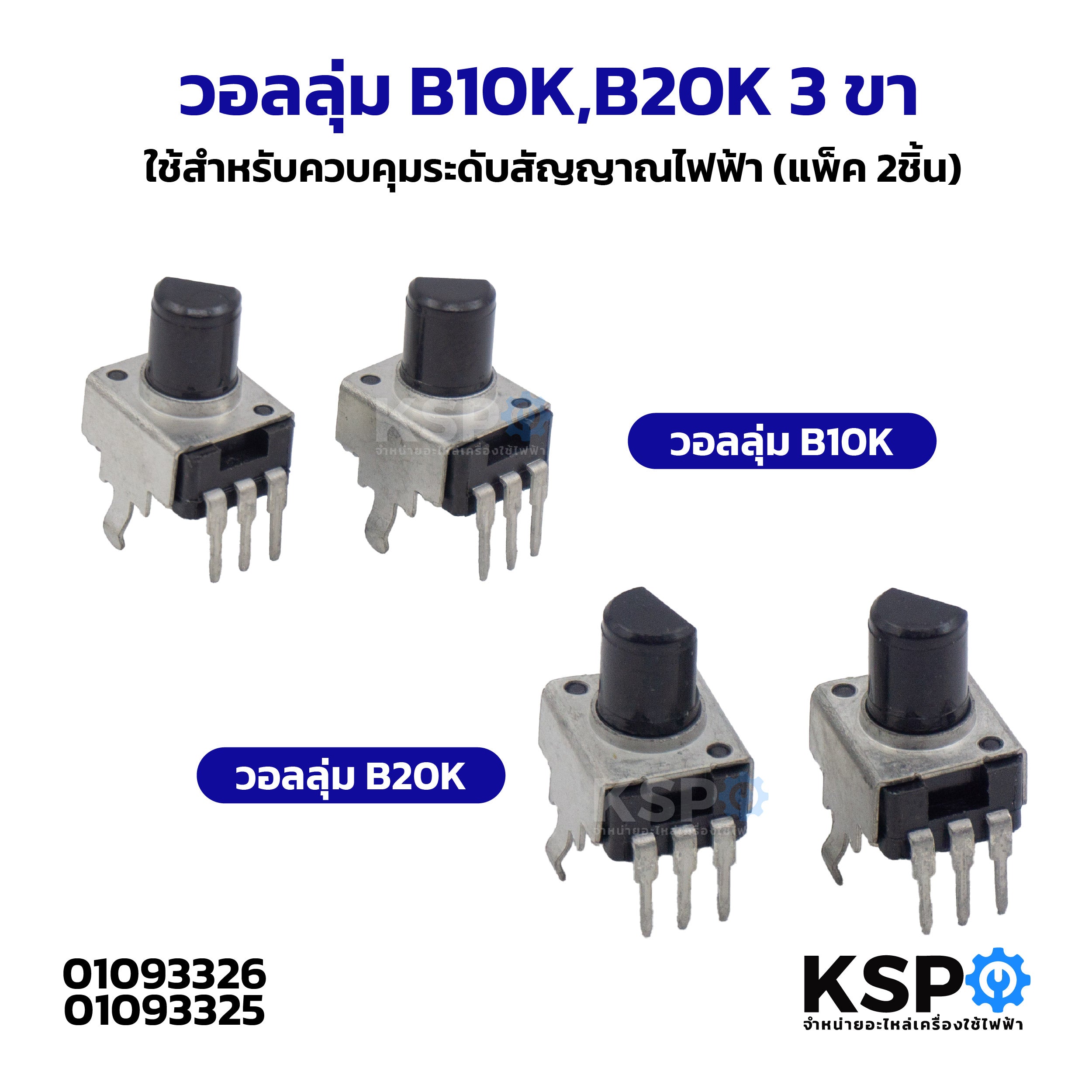 วอลลุ่ม B10K,B20K 3ขา ใช้สำหรับควบคุมระดับสัญญาณไฟฟ้า (แพ็ค 2ชิ้น) potentiometers อุปกรณ์ช่าง