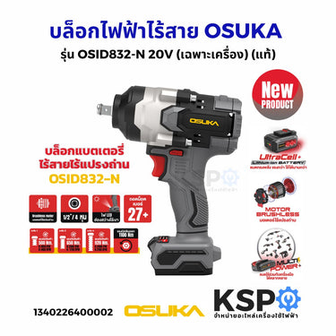 • ตัวเครื่องบล็อกไฟฟ้าไร้สาย OSUKA OSID832-N x 1