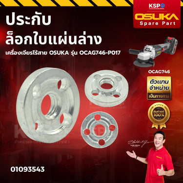 ประกับล็อกใบแผ่นล่าง สำหรับเครื่องเจียร OSUKA รุ่น OCAG746-P017 อะไหล่ทดแทนที่จำเป็นสำหรับการซ่อมแซมเครื่องเจียร OSUKA ที่มีปัญหาด้านประกับล็อกใบเจียร ช่วยให้เครื่องเจียรของคุณกลับมาใช้งานได้อย่างปลอดภัยและมีประสิทธิภาพเต็มที่ เป็นประกับสำหรับล็อกใบเจียรด้านล่าง ช่วยให้ใบเจียรติดแน่นกับเครื่อง สำหรับเครื่องเจียร OSUKA รุ่น OCAG746 ติดตั้งง่าย ทนทานต่อการใช้งาน
