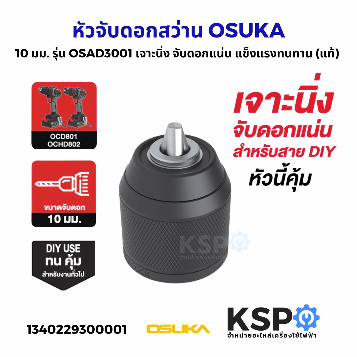 หัวจับดอกสว่าน OSUKA 10mm รุ่น OSAD3001 ใช้ได้กับรุ่น OCD801, OCHD802 เจาะนิ่ง จับดอกแน่น แข็งแรงทนทาน (แท้) เครื่องมือช่าง