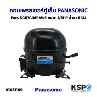 คอมตู้เย็น คอมเพรสเซอร์ตู้เย็น PANASONIC พานาโซนิค Part. DG57C96RAW5 ขนาด 1/5HP น้ำยา R134 อะไหล่ตู้เย็น