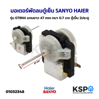 มอเตอร์พัดลมตู้เย็น Sanyo Haier Distar Singer รุ่น 079N4 แกนยาว 47 mm หนา 0.7mm ตู้เย็น 2ประตู อะไหล่ตู้เย็น