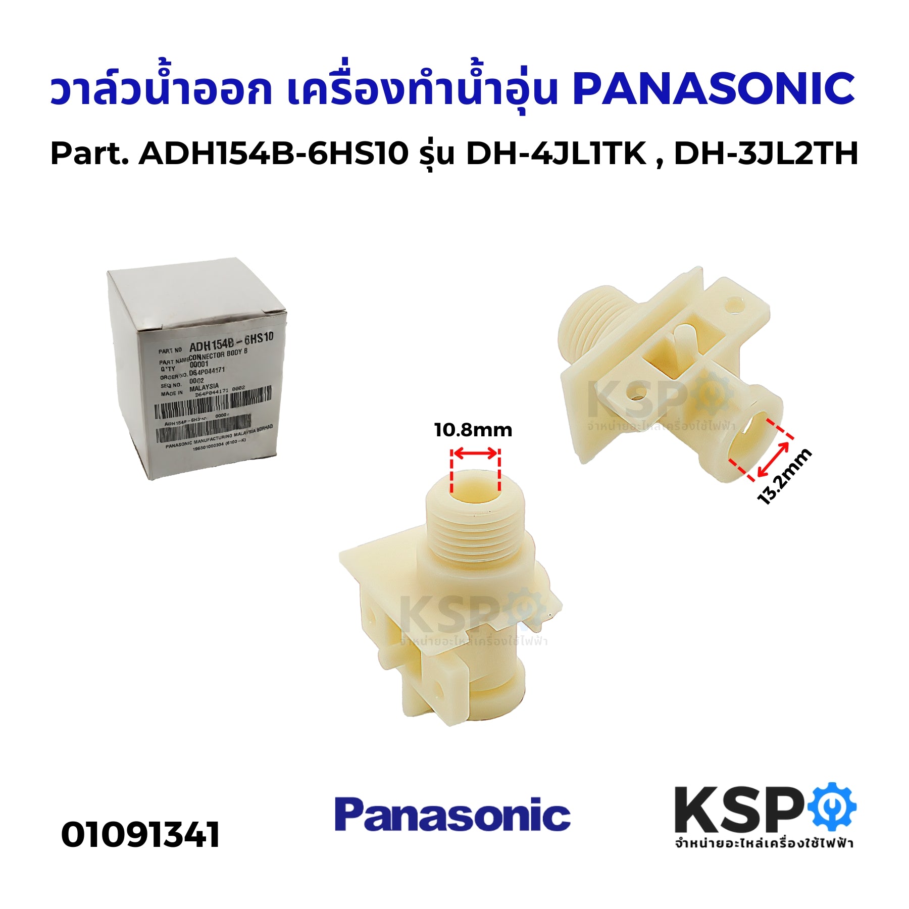 วาล์วน้ำออก เครื่องทำน้ำอุ่น PANASONIC พานาโซนิค Part. ADH154B-6HS10 รุ่น DH-4JL1TK , DH-3JL2TH อะไหล่เครื่องทำน้ำอุ่น