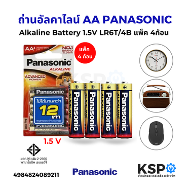 ถ่านอัลคาไลน์ Panasonic ขนาด AA แรงดัน 1.5 โวลต์ รุ่น LR6T/4B แพ็ค 4 ก้อน ให้พลังงานยาวนาน เหมาะสำหรับอุปกรณ์อิเล็กทรอนิกส์ทั่วไป เช่น รีโมทคอนโทรล ของเล่น นาฬิกา เมาส์ไร้สาย และอื่นๆ