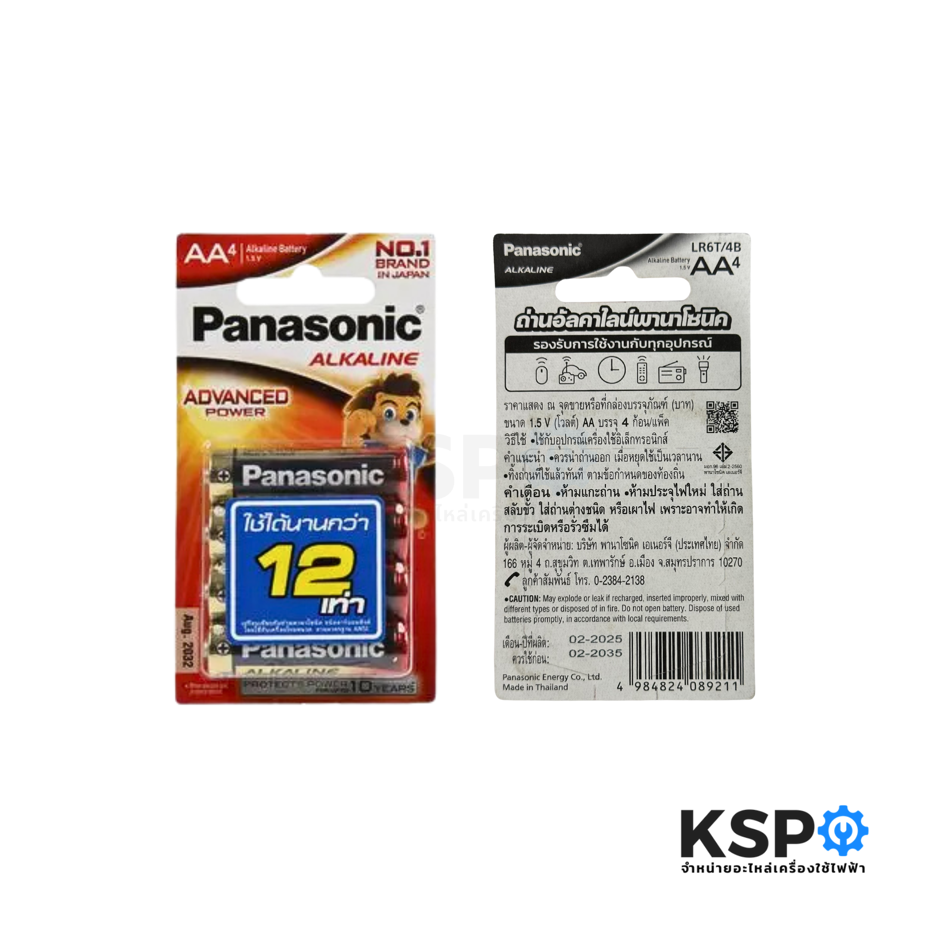 ถ่านอัลคาไลน์ AA PANASONIC พานาโซนิค 1.5V LR6T/4B แพ็ค 4ก้อน Alkaline Battery แบตเตอรี่