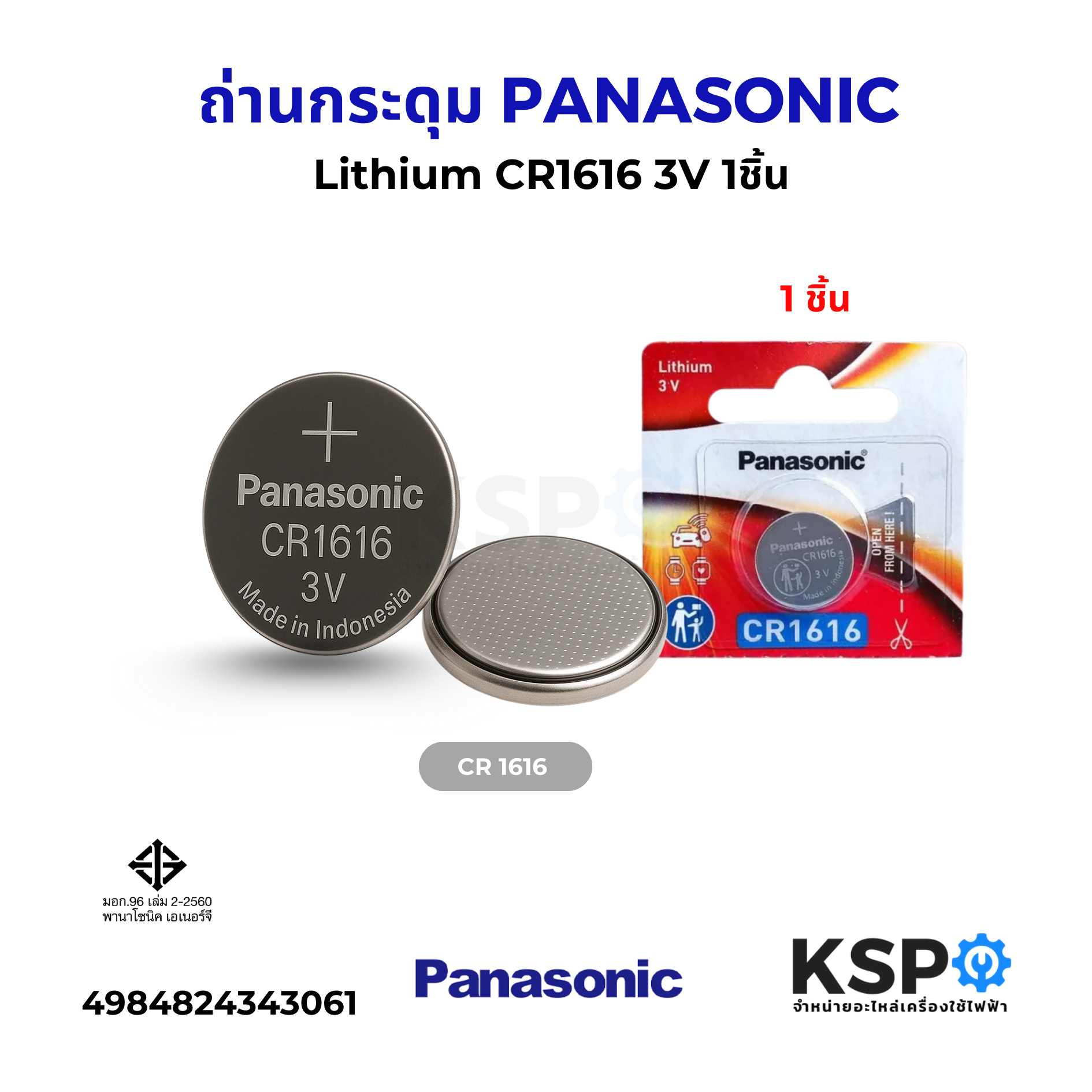 ถ่านกระดุม PANASONIC พานาโซนิค Lithium CR1616 3V 1ชิ้น ถ่านนาฬิกา ถ่านกลม เครื่องคิดเลข แบตเตอรี่ลิเธียม อุปกรณ์แบตเตอรี่