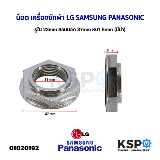 ดูรายละเอียดทั้งหมดน็อต เครื่องซักผ้า น๊อตชุดครัช แกนซัก LG SAMSUNG PANASONIC รูใน 23mm ขอบนอก 37mm หนา 8mm (มีบ่า) อะไหล่เครื่องซักผ้าPA