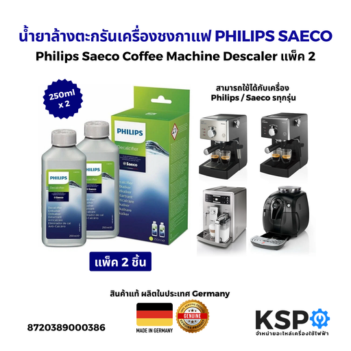 น้ำยาล้างตะกรันเครื่องชงกาแฟ PHILIPS SAECO Descaler ของแท้ ขนาด 250ml (แพ็ค 2 ชิ้น) ช่วยกำจัดคราบตะกรันที่สะสมในเครื่องชงกาแฟ เพื่อยืดอายุการใช้งาน...