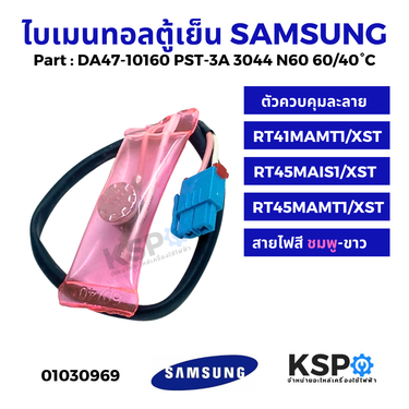 ไบเมนทอลตู้เย็น ตัวควบคุมละลาย SAMSUNG Part. PST-3A 3044 N60 (60/40°C) อะไหล่แท้สำหรับตู้เย็น Samsung (ซัมซุง) ใช้ควบคุมการละลายน้ำแข็ง (Defrost) ให้ทำงานได้อย่างมีประสิทธิภาพ ช่วยป้องกันน้ำแข็งเกาะในตู้เย็นมากเกินไป ทำให้การทำความเย็นมีความสม่ำเสมอ และช่วยยืดอายุการใช้งานของคอมเพรสเซอร์และระบบทำความเย็น