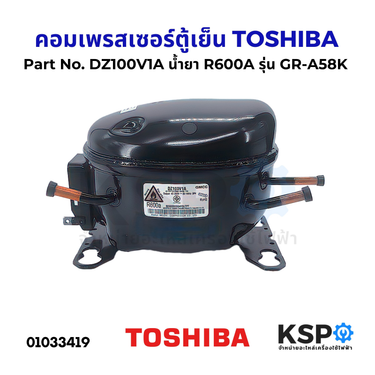 คอมเพรสเซอร์ ตู้เย็น TOSHIBA โตชิบา Part No.DZ100V1A น้ำยา R600A รุ่น GR-A58K อะไหล่ตู้เย็น