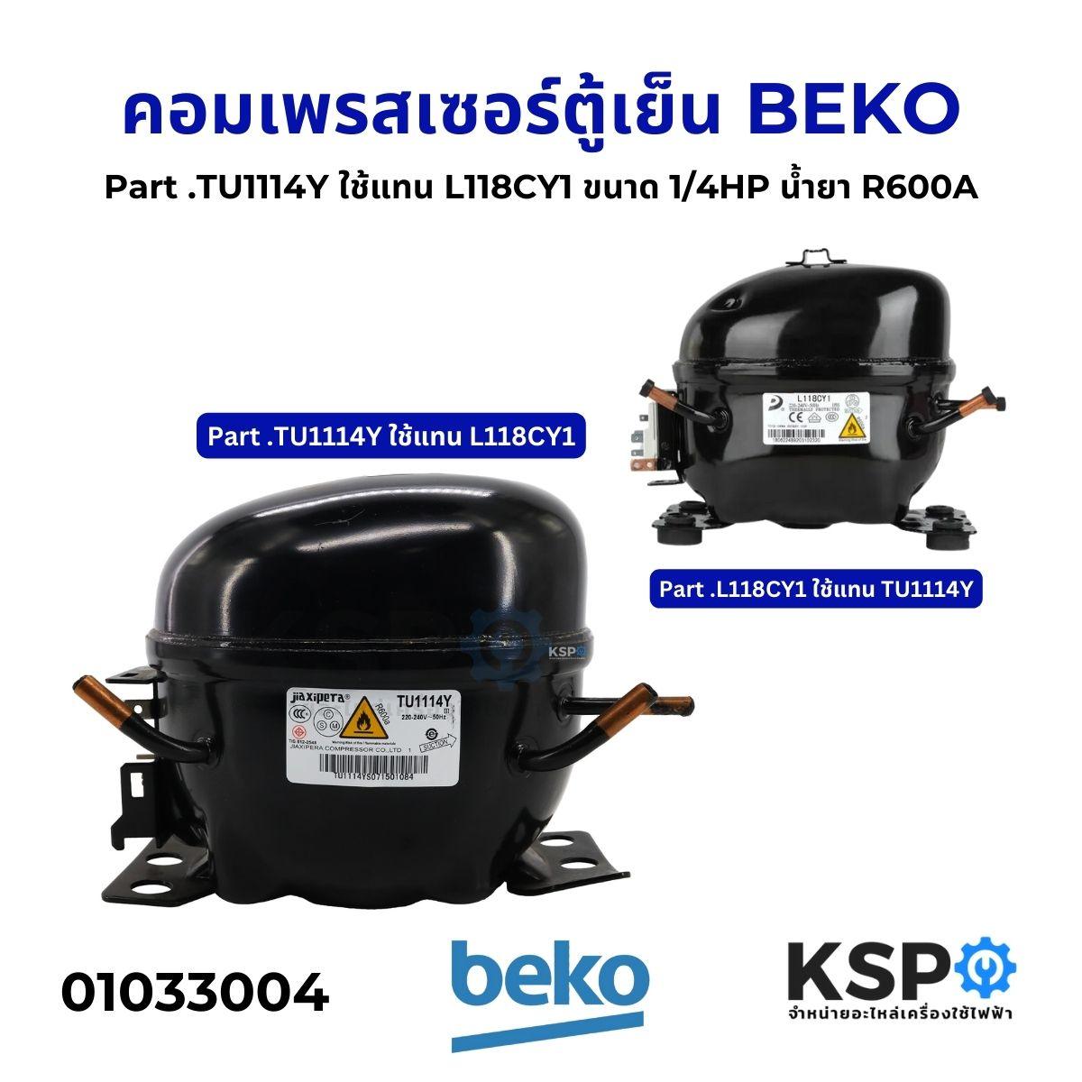 คอมเพรสเซอร์ ตู้เย็น BEKO เบโค Part No.TU1114Y ขนาด 1/4HP น้ำยา R600A อะไหล่ตู้เย็น