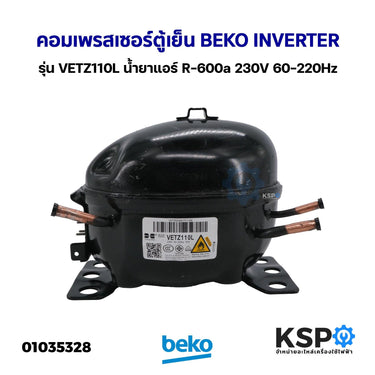คอมเพรสเซอร์ ตู้เย็น BEKO INVERTER รุ่น VETZ110L น้ำยาแอร์ R-600a 230V 60-225Hz (แท้ ถอด) อะไหล่ตู้เย็น