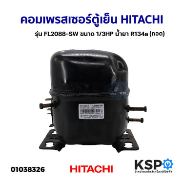 คอมเพรสเซอร์ตู้เย็น HITACHI รุ่น FL2088-SW และ FL2088-SZ ขนาด 1/3HP เหมาะสำหรับใช้กับตู้เย็นและตู้แช่ประเภท SIZE BY SIZE รองรับน้ำยาแอร์ R-134a และระบบไฟ AC220-240V ให้ประสิทธิภาพสูงในการทำความเย็น