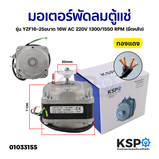 มอเตอร์ตู้แช่ ตู้เย็น 16W / 60W 220-240V 1300/1550rpm (ยึดหลัง) สามารถใช้ได้กับตู้แช่ทั่วไป (ทองแดง) อะไหล่ตู้เย็น