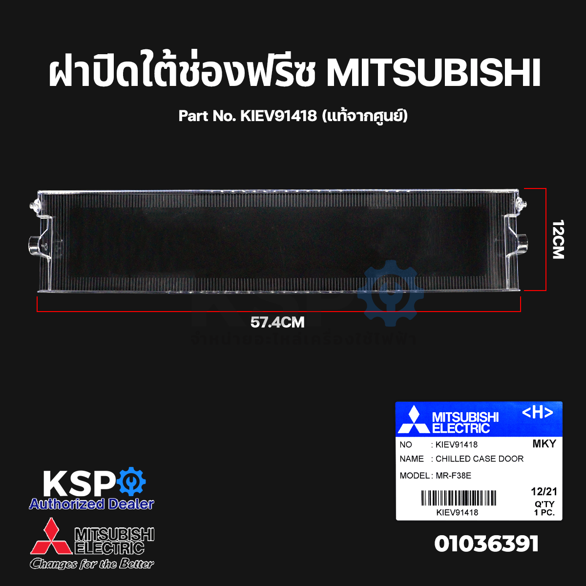 ฝาปิดช่องแช่ ใต้ช่องฟรีซ ตู้เย็น MITSUBISHI มิตซูบิชิ Part No. KIEV91418 (แท้จากศูนย์) อะไหล่ตู้เย็น