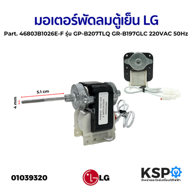 หน้าแรก ร้านค้า อะไหล่ตู้เย็น มอเตอร์พัดลมตู้เย็น LG แอลจี Part No.4680JB1026E-F รุ่น GR-B207TLQ GR-B197GLC 220VAC 50Hz Evaporator Fan Motor อะไหล่ตู้เย็น