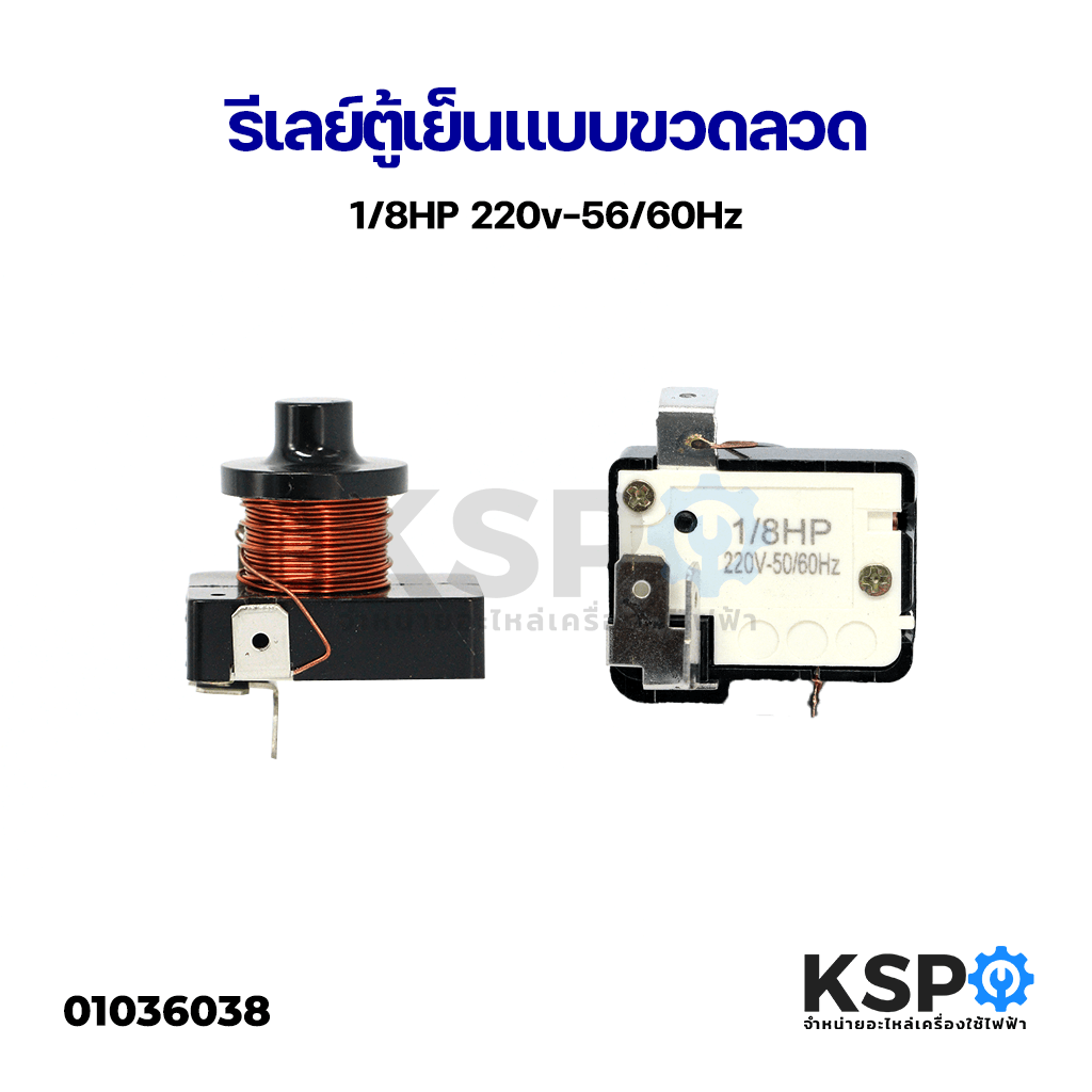 รีเลย์ตู้เย็น ตู้เเช่ แบบขดลวดทองแดง 1/8 HP 220V 50/60Hz ใช้กับโอเว่อโหลดตู้เย็น อะไหล่ตู้เย็น