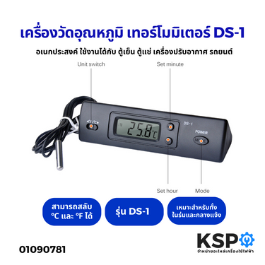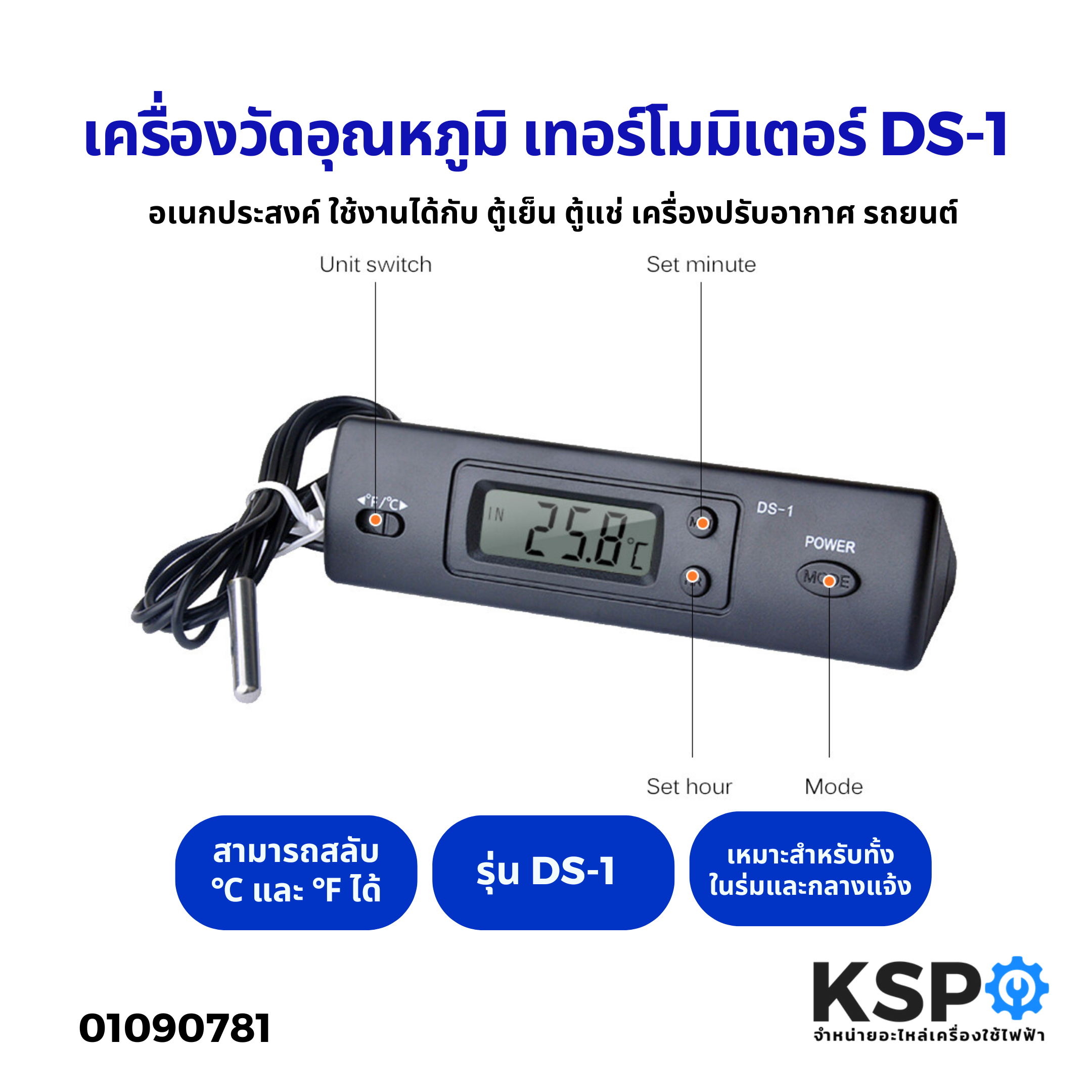 เทอร์โมมิเตอร์ วัดอุณหภูมิ แบบดิจิตอล รุ่น DS-1 ใช้งานได้กับตู้เย็น, ตู้แช่, เครื่องปรับอากาศ, เครื่องทำความเย็นทุกชนิด