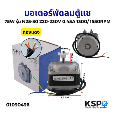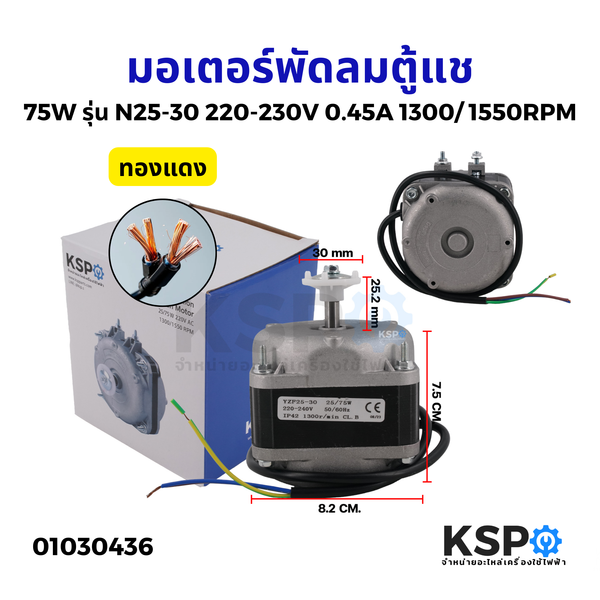 มอเตอร์พัดลมตู้แช่ 75W รุ่น N25-30 220-230V 0.45A 1300/1550RPM (ทองแดง) อะไหล่ตู้เย็น