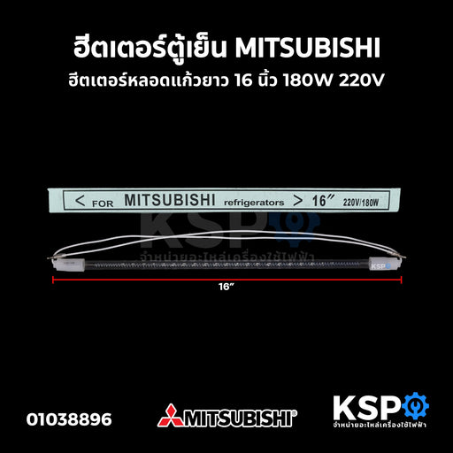 ฮีตเตอร์ตู้เย็น MITSUBISHI มิตซูบิชิ ยาว 16 นิ้ว 180W 220V ฮีตเตอร์หลอดแก้ว อะไหล่ตู้เย็น