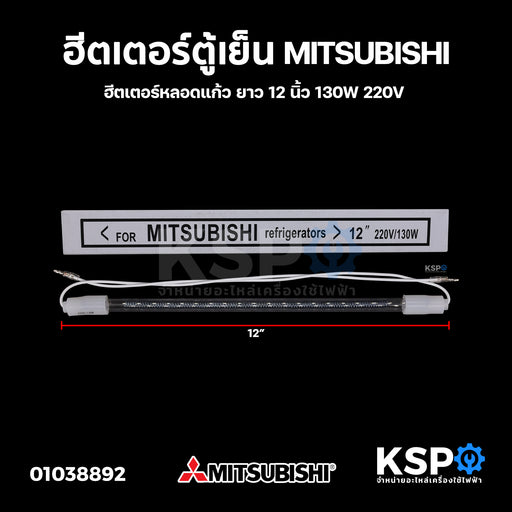 ฮีตเตอร์ตู้เย็น MITSUBISHI มิตซูบิชิ ยาว 12 นิ้ว 130W 220V ฮีตเตอร์หลอดแก้ว อะไหล่ตู้เย็น