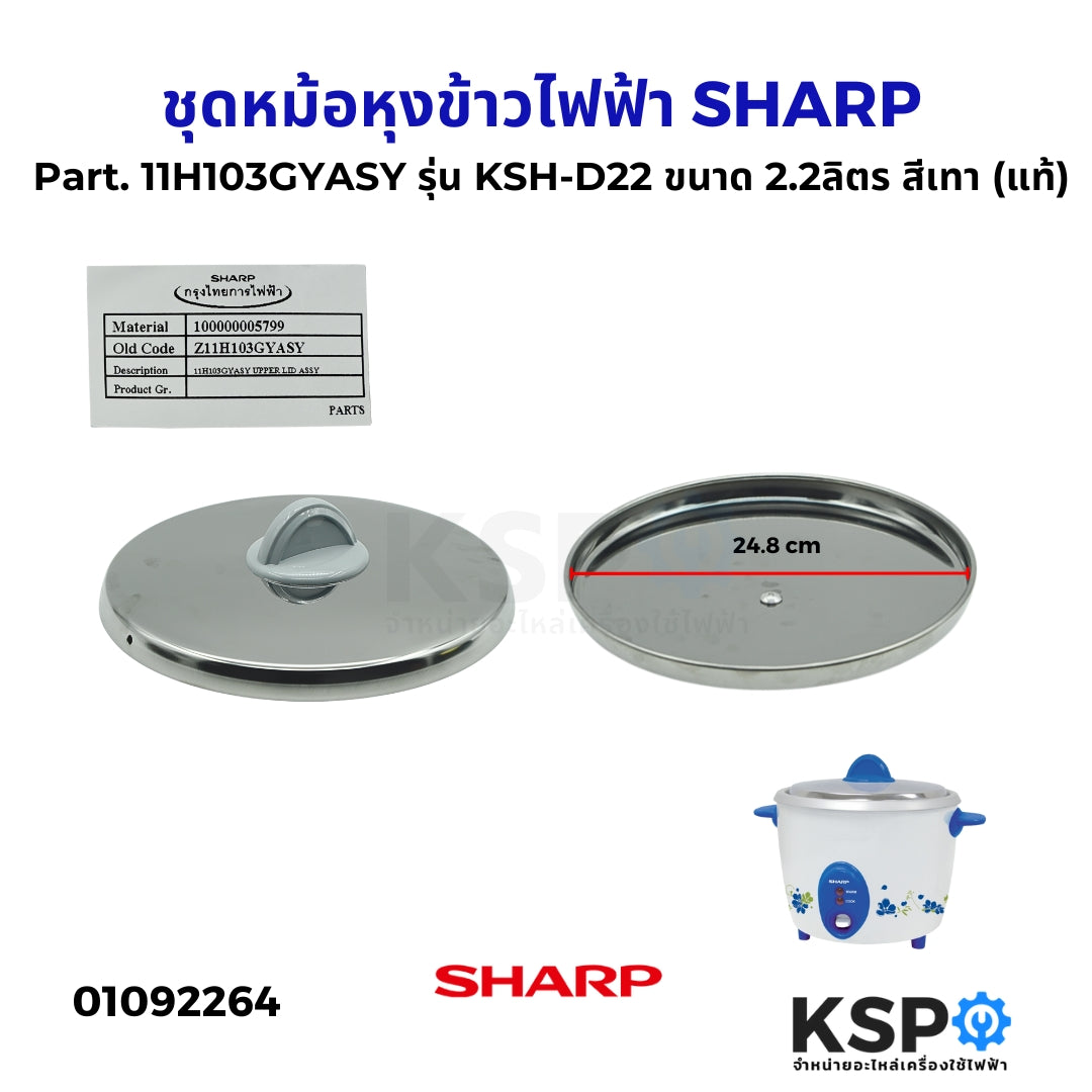 ชุดฝาหม้อ หม้อหุงข้าวไฟฟ้า SHARP ชาร์ป Part. 11H103GYASY รุ่น KSH-D22 ขนาด 2.2 ลิตร สีเทา เป็นอะไหล่แท้จากศูนย์ สำหรับเปลี่ยนแทนฝาหม้อที่ชำรุดหรือเก่า