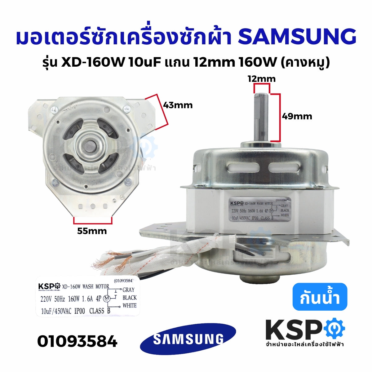มอเตอร์ซักเครื่องซักผ้า SAMSUNG ซัมซุง รุ่น XD-160W 10uF แกน 12mm 160W แบบกันน้ำ (คางหมู) (เทียบใช้) อะไหล่เครื่องซักผ้า