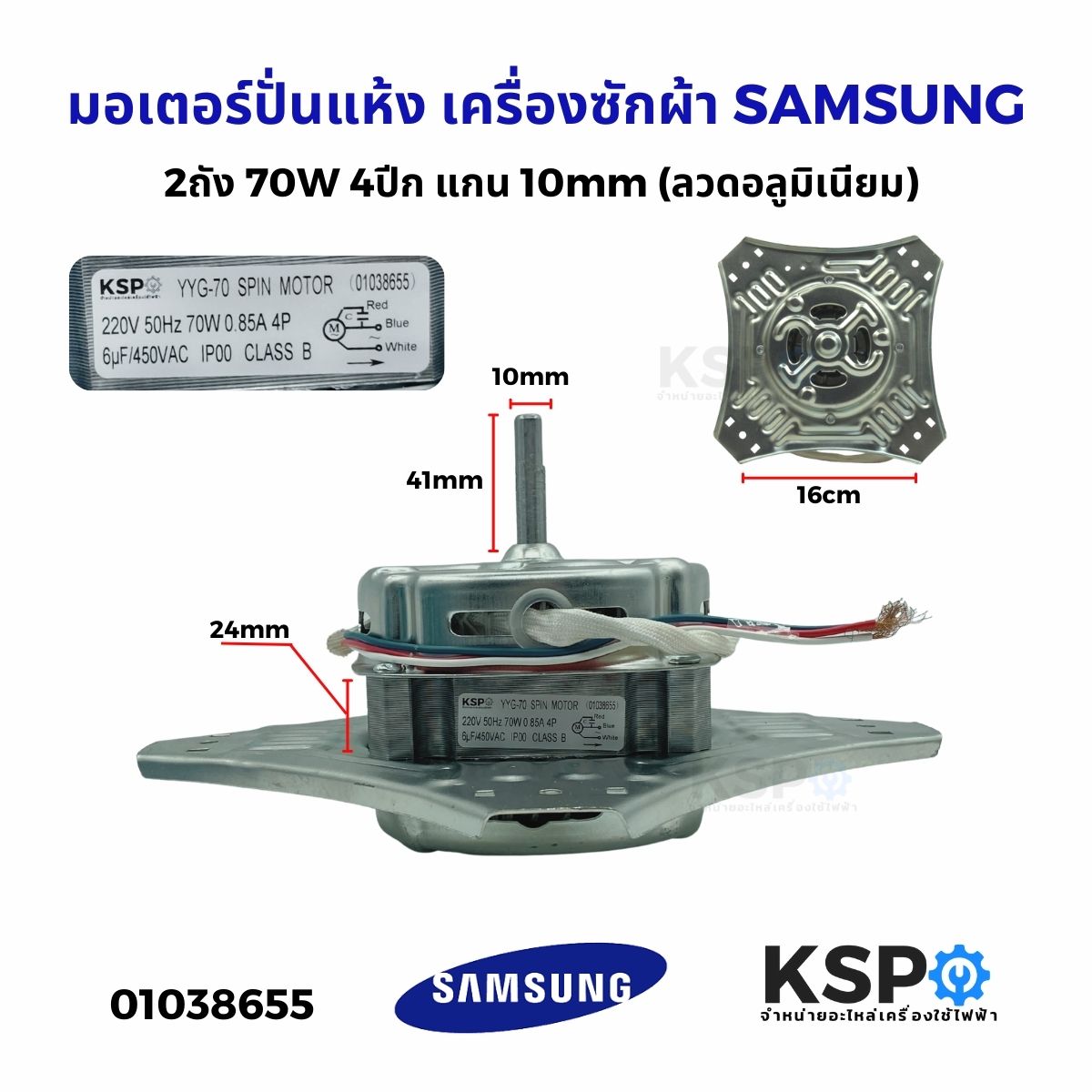 มอเตอร์ปั่นแห้ง เครื่องซักผ้า SAMSUNG ซัมซุง 2ถัง 70W 4 ปีก แกน 10mm รุ่น WT13J7 WT10J7 (ลวดอลูมิเนียม) อะไหล่เครื่องซักผ้า