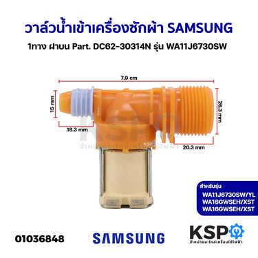 วาล์วน้ำเข้า เครื่องซักผ้า 1ทาง SAMSUNG ซัมซุง ฝาบน Part. DC62-30314N รุ่น WA11J6730SW (แท้ถอด) อะไหล่เครื่องซักผ้า