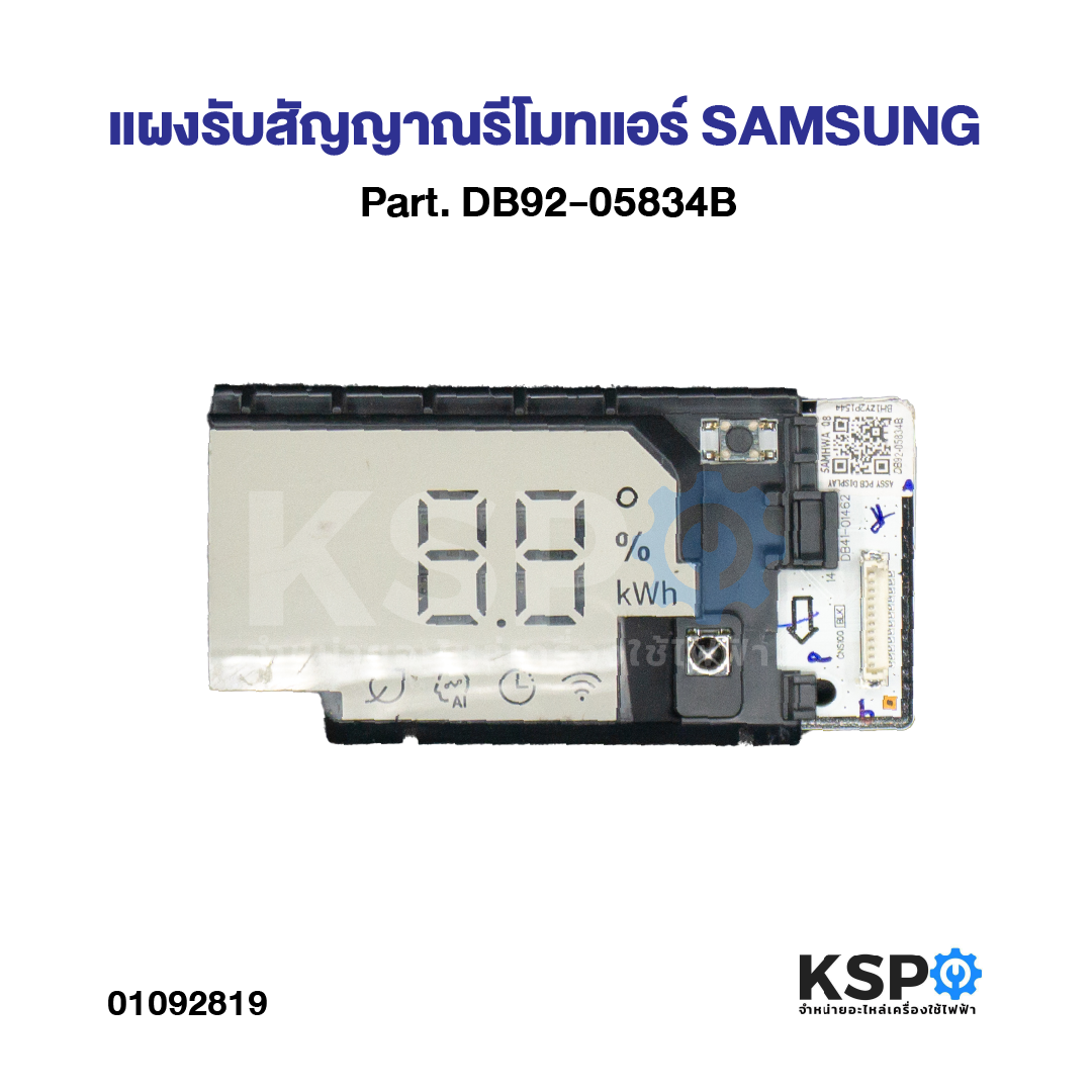แผงรับสัญญาณรีโมทแอร์ SAMSUNG (ซัมซุง) รุ่น Part No. DB92-05834B อะไหล่แท้คุณภาพสูง ใช้สำหรับเปลี่ยนหรือซ่อมบำรุงแผงรับสัญญาณรีโมทและเซ็นเซอร์แอร์ของเครื่องปรับอากาศซัมซุง ให้การรับสัญญาณจากรีโมทได้แม่นยำและรวดเร็วเหมือนใหม่ ช่วยให้เครื่องปรับอากาศทำงานได้อย่างเต็มประสิทธิภาพ