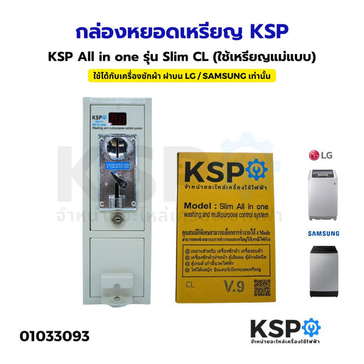 กล่องหยอดเหรียญ KSP All in one รุ่น Slim CL (ใช้เหรียญแม่แบบ) ใช้ได้กับเครื่องซักผ้า ฝาบน LG SAMSUNG ที่เป็นระบบธรรมดา เท่านั้น อะไหล่เครื่องซักผ้า