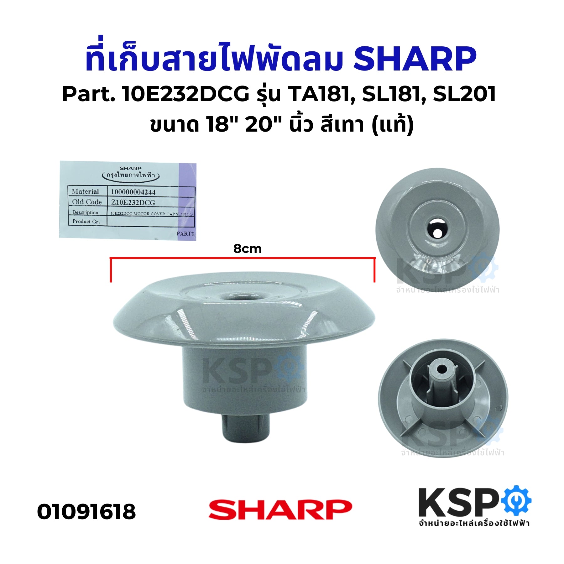 ที่เก็บสายไฟพัดลม SHARP ชาร์ป Part. 10E232DCG รุ่น TA181, SL181, SL201 ขนาด 18" 20" นิ้ว สีเทา (แท้) อะไหล่พัดลม