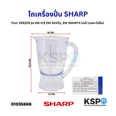 โถเครื่องปั่น SHARP ชาร์ป รุ่น EM-ICE, EM-SAVE1, EM-SMART4 (Z9E209) แท้ อะไหล่เครื่องปั่น